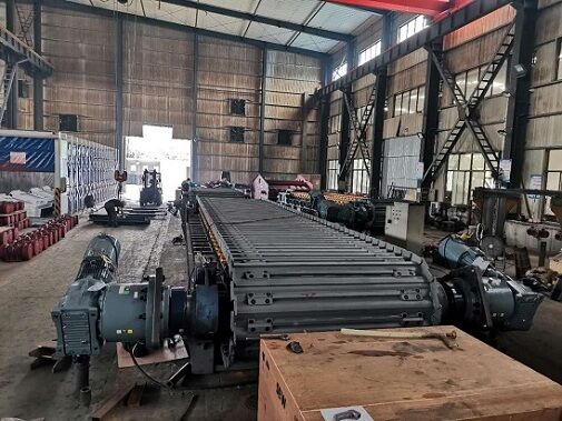 (3)輥體通過卡鍵定位在通軸上,并鎖緊,輥體長度與負(fù)荷槽板上固定運(yùn)轉(zhuǎn)鏈條的加厚槽板等長并對(duì)應(yīng),支承回程槽板負(fù)荷。
