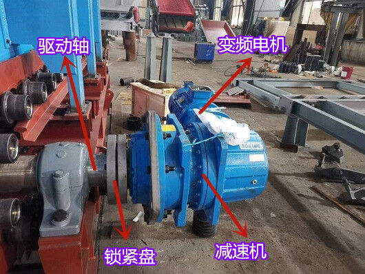 3)采用變頻調(diào)速電動機通過彈性柱銷聯(lián)軸器與軸裝式減速機直聯(lián),主傳動軸直接串在減速機的空心輸出軸內(nèi),通過鎖緊盤(漲套)聯(lián)接。由于減速機采用懸掛軸裝式結構,傳動裝置整體為懸掛式,安裝就位時可將減速機支架與主機機架簡易連接或在減速機支架下設置簡易力臂式支座與地面連接,支座根據(jù)現(xiàn)場條件制作。