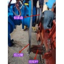 驅(qū)動機構由電機、減速機、鎖緊盤和扭力裝置組成,驅(qū)動機構通過鎖緊盤帶動鏈輪軸旋轉,從而對物料進行輸送。為了抵抗驅(qū)動機構隨鏈輪軸旋轉的力,扭力裝置需要固定在地基上或者機架上。