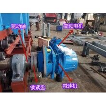 2)該裝置為直交軸支點浮動式,主軸套裝在行星直交減速器的空心輸出軸內(nèi),通過鎖緊盤將兩者聯(lián)結起來,其特點是懸掛式,重量輕,速比大,拆裝及維修方便。