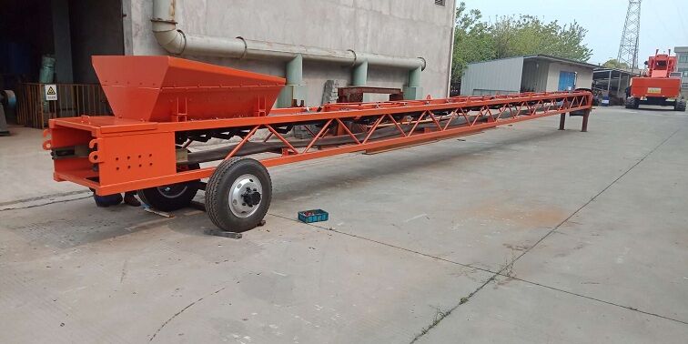 首先將布料桁架放下,在桁架前端用安全凳墊好;依次拆下附件(油管、電氣)、上料膠帶機(jī)、主機(jī)受料斗、配重、油缸、布料膠帶機(jī)、三角支架等。