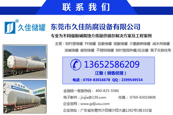 3、久佳儲罐的防腐原料耐化學(xué)性能非常優(yōu)異,除少數(shù)溶液可以溶脹它外,幾乎可以耐大部分物質(zhì)溶液