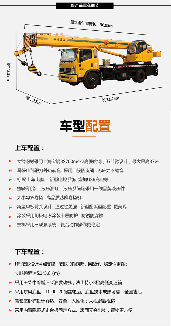 森源十噸汽車(chē)吊適用于狹窄工況的小型吊車(chē) 東風(fēng)