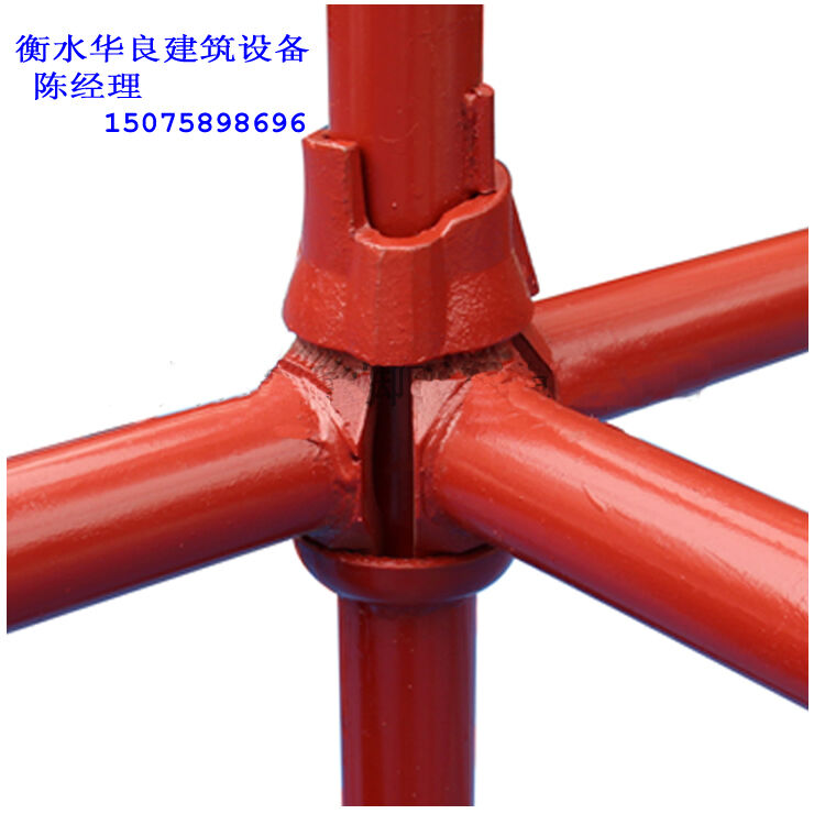 碗扣腳手架獨特的結點設計,雖仍應歸為鉸接,但卻能夠承受相對更大的荷載,再加上其立桿上的上碗和橫桿上的插片均為鍛鋼的工藝,使這款碗扣腳手架系統,在國外被廣泛地應用于化工廠、煉油廠、油田以及大型船艦維修等荷載相對較高的領域??紤]到系統的穩(wěn)定性,安裝斜桿是必須的。為了補足這個弱項,該系統特意設計了另外一類斜桿,在斜桿的兩頭,均用高強度螺栓,各固定半個旋轉扣件,扣件亦采用鍛鋼工藝。這樣,盡管斜桿無法直接在碗扣的結點扣接,但可以用扣件扣接在橫桿或立桿的適當位置上,也大大地改善了系統的穩(wěn)定性。