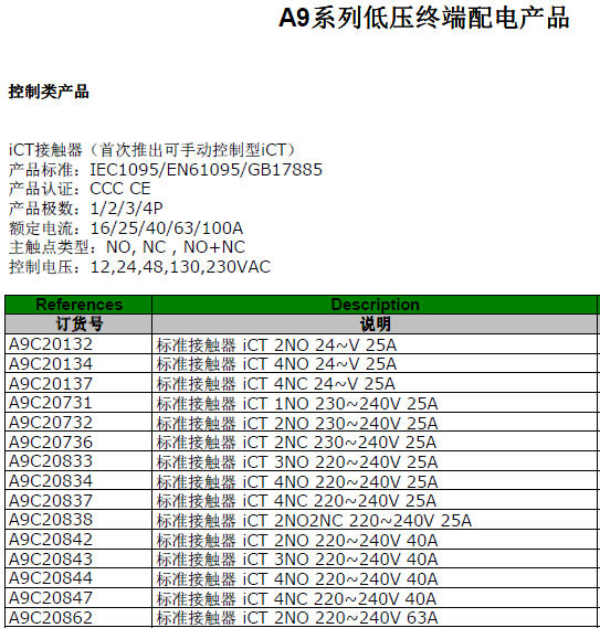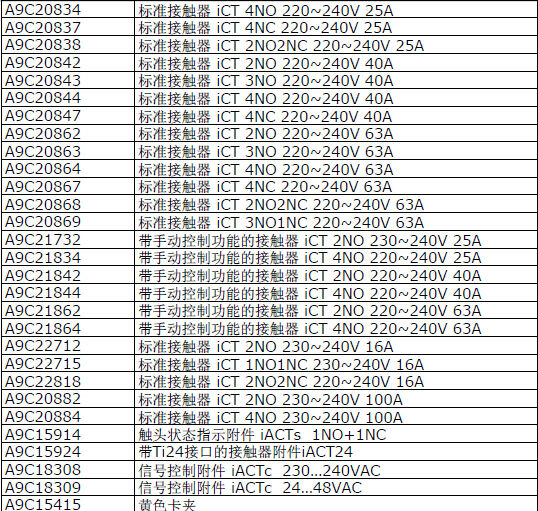 歸屬行業(yè):標(biāo)準(zhǔn)接觸器iCT 4NC 240V 25A