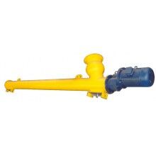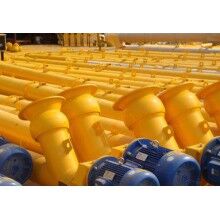 水泥等粉料的輸送必須在完全密封的腔體內(nèi)進(jìn)行,以免污染環(huán)境和輸送物料受潮。O形截面的螺旋輸送機(jī)是應(yīng)用最廣泛的粉料供料輸送裝置。其機(jī)殼采用無縫鋼管,常見規(guī)格有φ219,φ273,φ325,機(jī)殼尾部進(jìn)口通過球形絞鏈與筒倉翻板門連接,頭部出口通過帆布袋柔軟連接通向主體上的粉料秤斗。安裝傾角一般在30°~45°之間,必要時(shí)可達(dá)60°。螺旋的長度不應(yīng)超過14m,可通過更換中間節(jié)段得到不同的螺旋總長度。