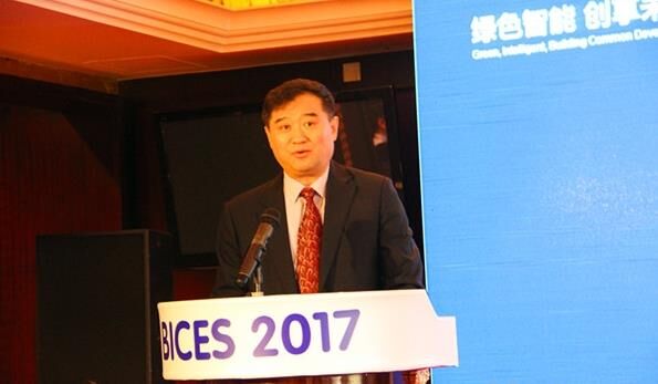 中國工程機械工業(yè)協(xié)會常務副會長兼秘書長蘇子孟做BICES 2017展會倒計時100天主題發(fā)言。