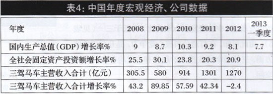 在連續(xù)多年保持高速增長之后,三駕馬車內(nèi)部約宅因素增多、外部環(huán)境嚴(yán)峻等狀況,均在年報(bào)中得到反映.其多項(xiàng)財(cái)務(wù)指標(biāo)出現(xiàn)回落趨勢(shì)。企業(yè)發(fā)展到于—個(gè)臨界點(diǎn),調(diào)整發(fā)展戰(zhàn)略的時(shí)間窗口已經(jīng)開啟。