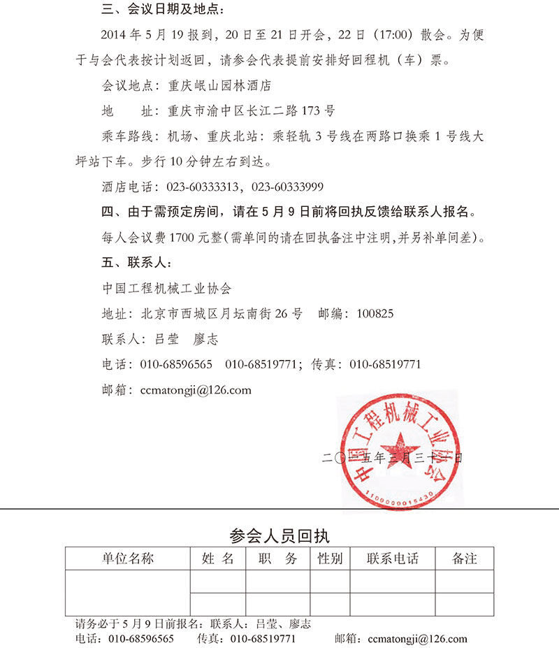 關(guān)于召開中國(guó)工程機(jī)械工業(yè)協(xié)會(huì)2015年度統(tǒng)計(jì)信息工作會(huì)的通知