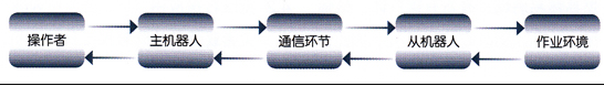工程機(jī)器人研究的現(xiàn)狀表明,由于受到機(jī)構(gòu)、控制、傳感器以及人工智能水平的限制,研究出能在未知環(huán)境中全自主方式工作的機(jī)器人是目前難以實(shí)現(xiàn)的目標(biāo)。因此,目前在核工業(yè)、搶險(xiǎn)救災(zāi)等高危、惡劣的環(huán)境中被廣泛應(yīng)用的是遙操作機(jī)器人。遙操作機(jī)器人主要分為視覺臨場(chǎng)感遙操作機(jī)器人、力覺臨場(chǎng)感遙操作機(jī)器人、觸覺臨場(chǎng)感遙操作機(jī)器人及運(yùn)動(dòng)覺臨場(chǎng)感遙操作機(jī)器人等?;谂R場(chǎng)感的遙操作機(jī)器人系統(tǒng)原理如圖3所示,它由操作者、主機(jī)器人(手控器)、通訊環(huán)節(jié)、從機(jī)器人和作業(yè)環(huán)境5部分構(gòu)成。在臨場(chǎng)感系統(tǒng)工作過程中,由操作者向主機(jī)器人發(fā)出操作命令(如位置指令)操作主機(jī)器人運(yùn)動(dòng),主機(jī)器人的運(yùn)動(dòng)信息通過通訊環(huán)節(jié)傳給遠(yuǎn)方的從機(jī)器人,從而控制從機(jī)器人的運(yùn)動(dòng);當(dāng)從機(jī)器人同環(huán)境交互時(shí),從機(jī)器人的運(yùn)動(dòng)信息(如視覺、力覺、觸覺等信息)又通過通訊環(huán)節(jié)反饋給本地主機(jī)器人,使操作者對(duì)于現(xiàn)場(chǎng)作業(yè)情況有了有效的感知,從而能夠及時(shí)做出準(zhǔn)確判斷,發(fā)出相應(yīng)的操作命令,控制遠(yuǎn)方從機(jī)器人準(zhǔn)確、高效地完成作業(yè)任務(wù)。目前,基于視覺臨場(chǎng)感的工程機(jī)器人遙操作控制主要是用攝像機(jī)獲取現(xiàn)場(chǎng)的視頻圖像并回傳到主控端,操縱者通過監(jiān)視器來完成對(duì)工程機(jī)器人的操作任務(wù)。