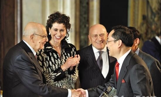 意大利總統(tǒng)納波利塔諾為中聯(lián)重科詹純新頒發(fā)“萊昂納多國(guó)際獎(jiǎng)”,這是中國(guó)企業(yè)家首次獲該國(guó)際獎(jiǎng)項(xiàng)。